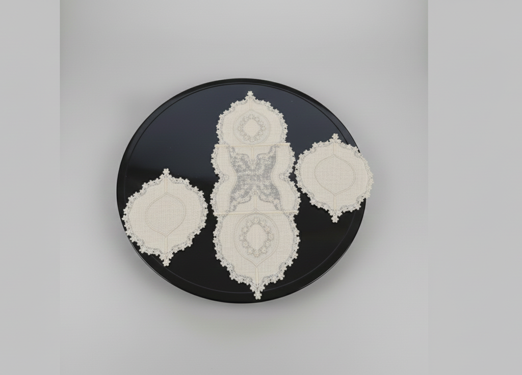 ست ٤ تکه رومیزی شامل یک جلو مبلی، یک رانر نهارخوری و ٢ عسلی