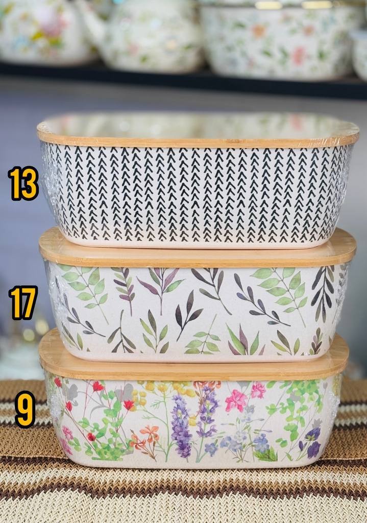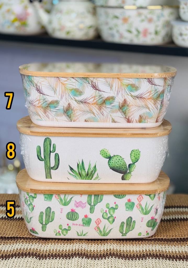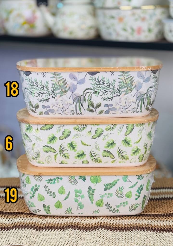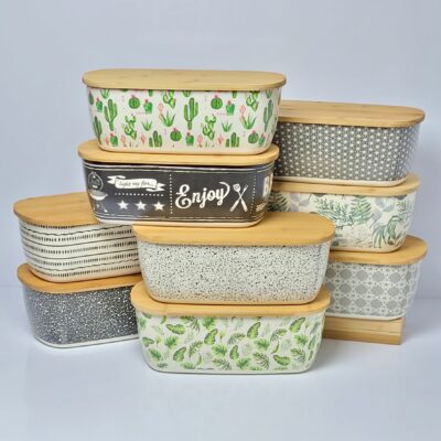 جنس: بامبو فیبر (کاملا برگشت پذیر به چرخه طبیعت) وزن بسیار سبک و مقاوم در برابر ضربه - دارای استاندارد غذا و دارو از اروپا و آمریکا - دارای طرح چاپ شده بر روی بدنه - دارای درب از جنس چوب بامبو - بدنه مستطیل شکل