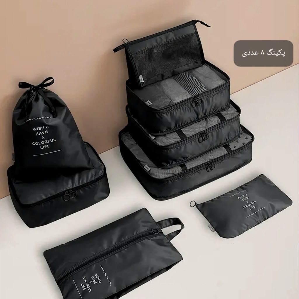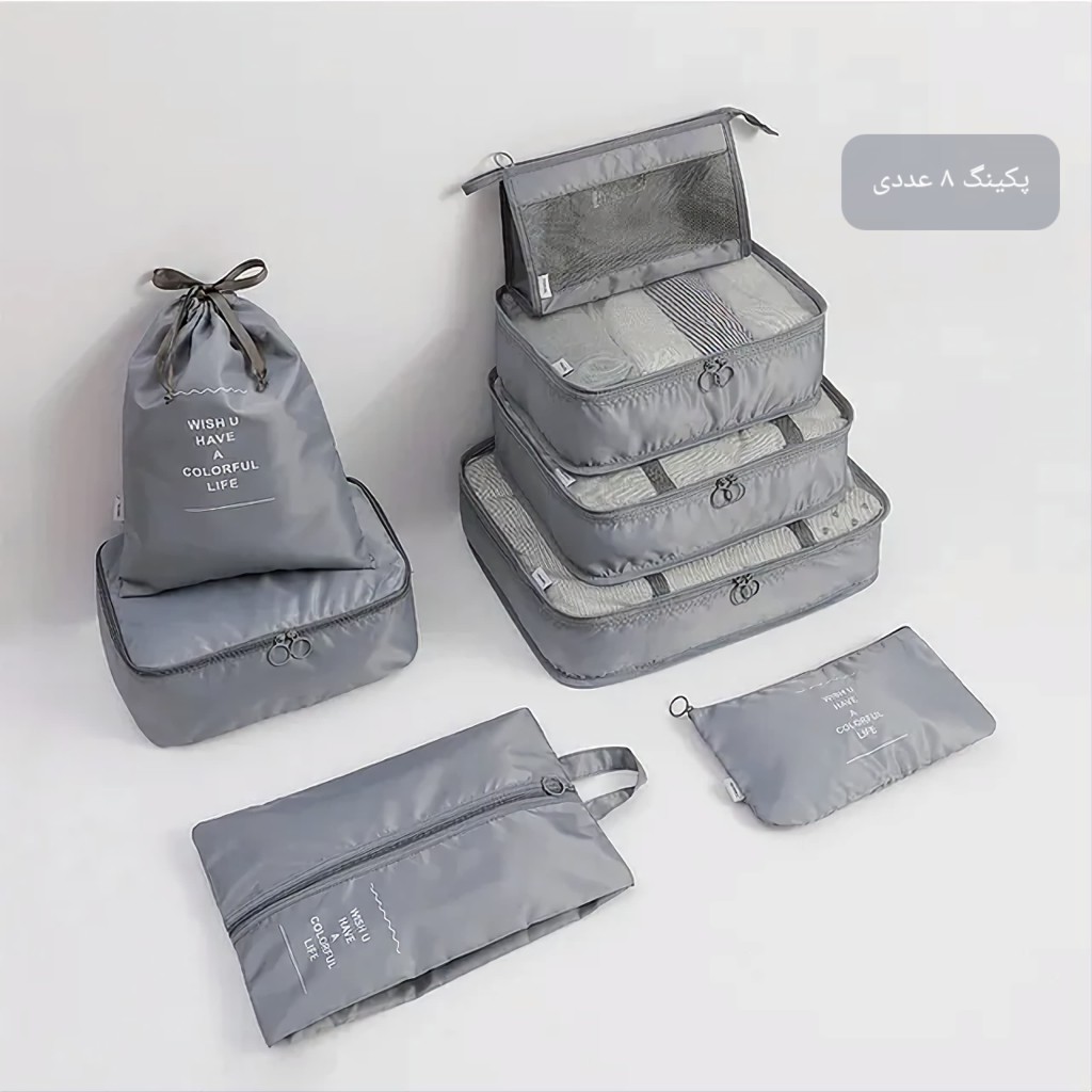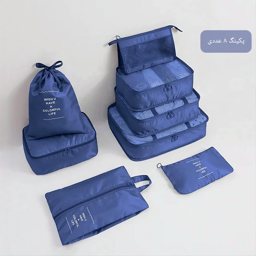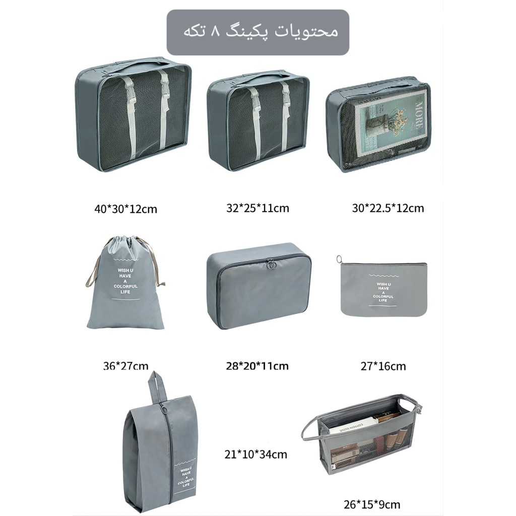 ابعاد و اقلام پکینگ نظم دهنده چمدان ۸ عددی شامل :
