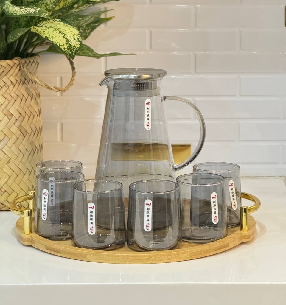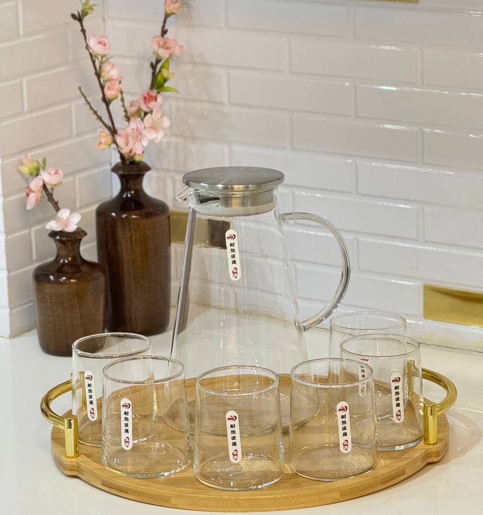 ست پارچ و لیوان پیرکس برند Deli ترکیبی از طراحی مدرن و کیفیت بالا است که برای سرو انواع نوشیدنیهای سرد و گرم انتخابی ایدهآل محسوب میشود. این ست از شیشه پیرکس شفاف و مقاوم در برابر حرارت ساخته شده و دوام بالایی در استفاده روزمره دارد.