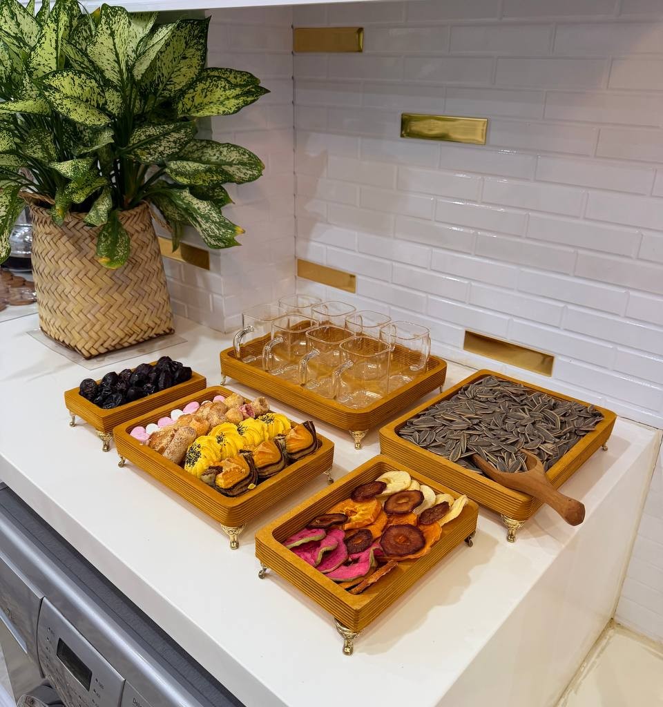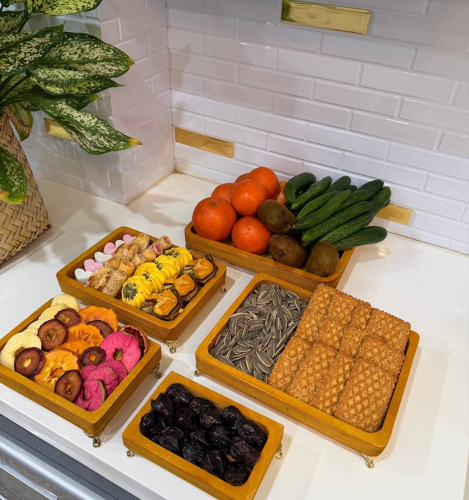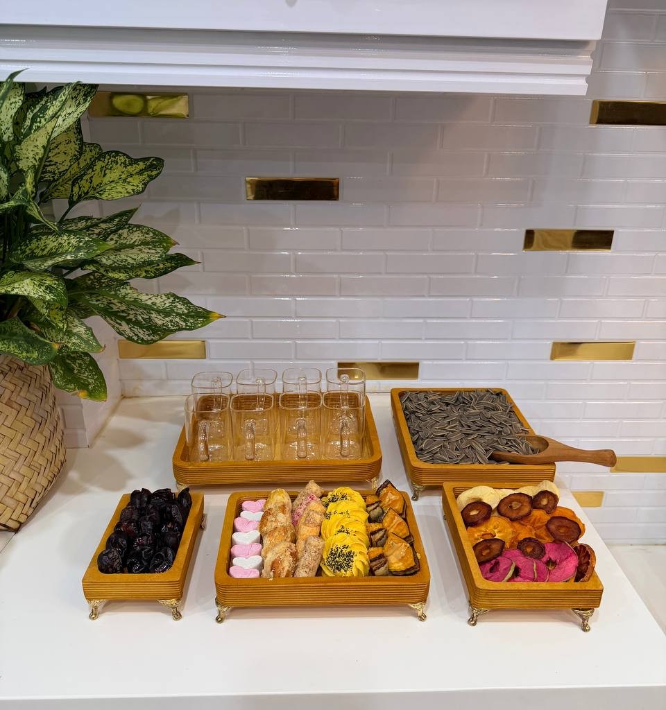 ست پذیرایی چوبی پنج تکه، گزینهای عالی برای استفاده روزمره، مهمانیها و حتی هدیه دادن است و حس صمیمیت و طبیعت را به فضای خانه شما میآورد.